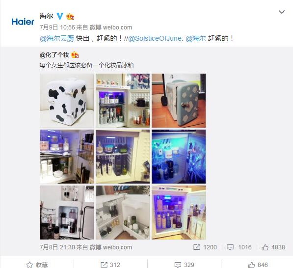 孫曉云女士梅花網(wǎng)傳播業(yè)大展上透露,運營著海爾官微的是一群平均年齡在1993年的90后,他們熱情又鬼點子多,領(lǐng)導(dǎo)給予了他們充分的信任,他們擁有著自主的決策權(quán)。當(dāng)一個熱點出來了,他們反應(yīng)熱點的能力非常迅速,想發(fā)的稿件從來不需要給領(lǐng)導(dǎo)審核,因此每一個新熱點出來,你都能第一時間看見海爾的身影。